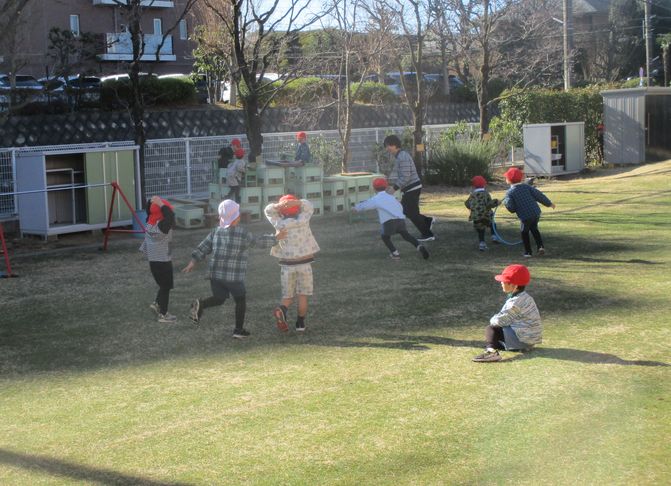 三学期の始業式をしてから、さっそく久しぶりの園での遊びを楽しみました。