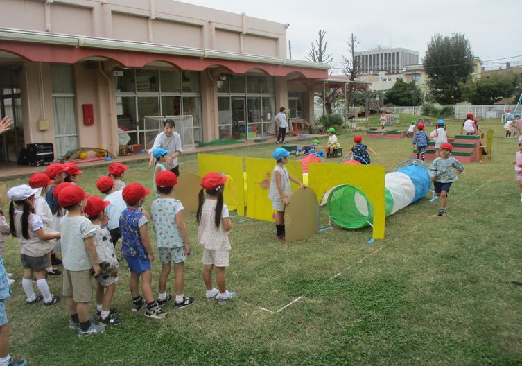 3組が張り切って作り進めてきた5つの「島」のコースが出来上がってきて、今日は、1組や2組みんなに誘いかけって、体を動かす姿がありました。