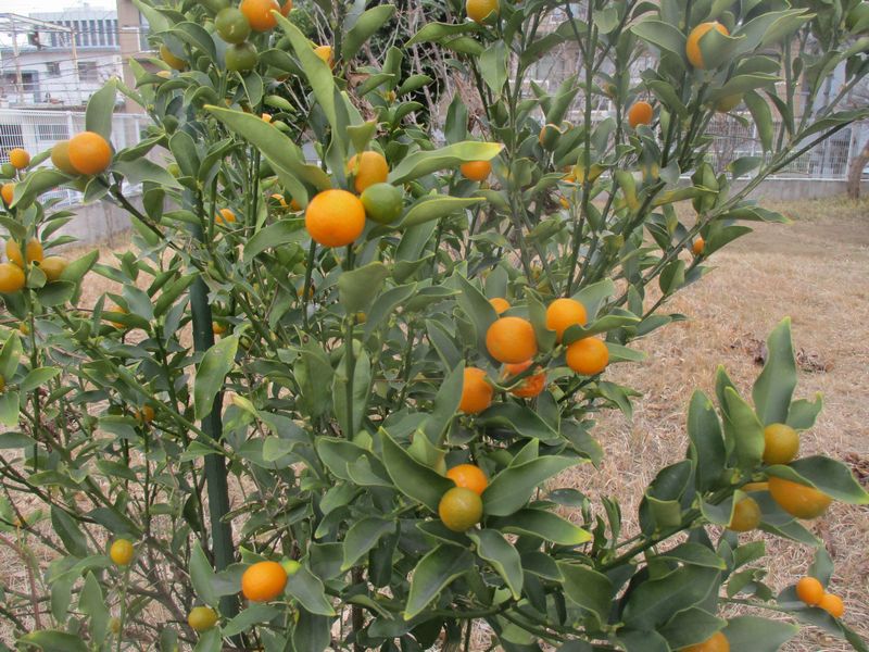 数年前に植えたキンカンの樹も、今年はだいぶたくさんの実をつけています。