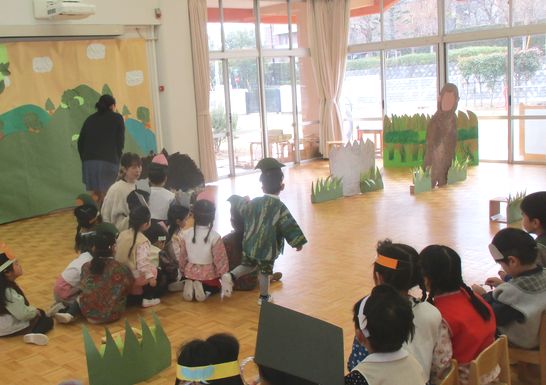 表現する方法の一つして、物語(お話し)の世界からイメージを広げて、劇での表現をすることに取り組んでいます。