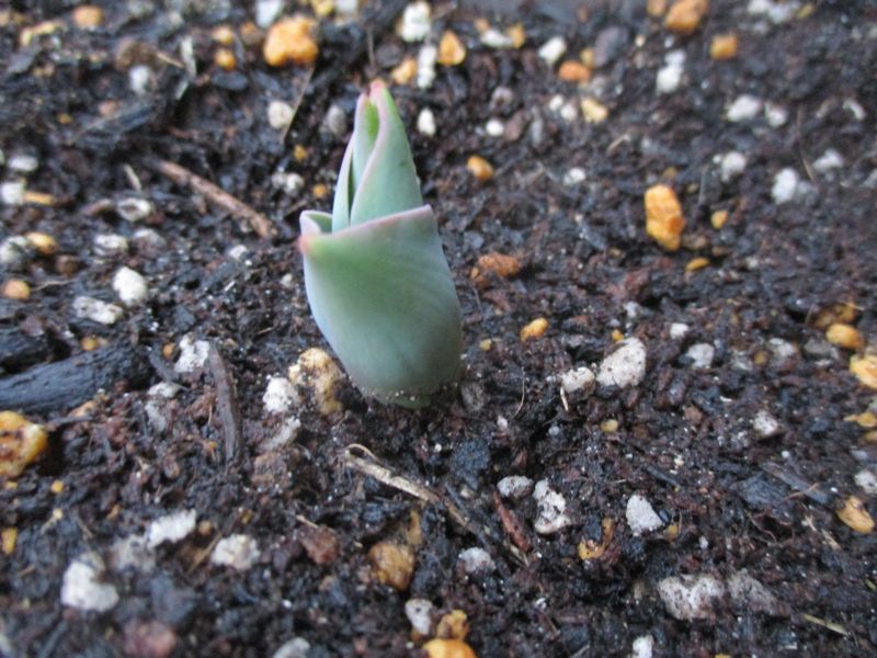 水栽培やプランターに植えた球根が、すくすく芽を出し、育っています。
