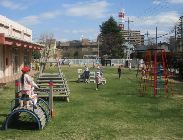 3組は食後に晴れ渡る園庭で、鬼遊びなどをしながら、思い切り駆け回る姿もありました。
