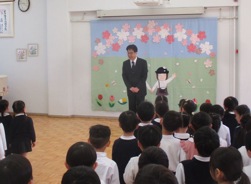 始業式では、新しい園長先生と出会い、お話を聞きました。
