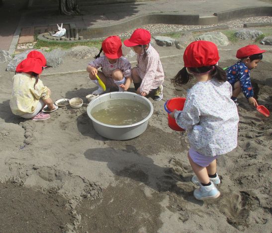 2組では、一緒に過ごす友達が増えて、春を感じながら、園庭に出て遊ぶ姿がたくさんありました。