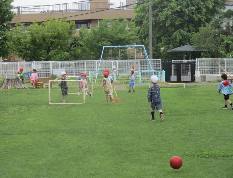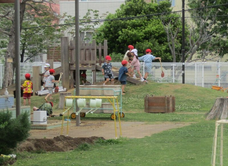 今日は、お昼の少し前までよいお天気でしたので、園庭でのびのび遊ぶ姿が多く見られました。