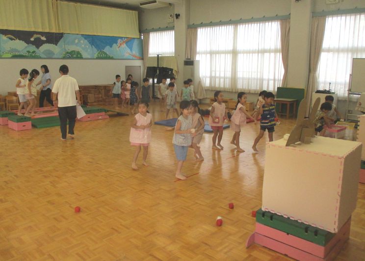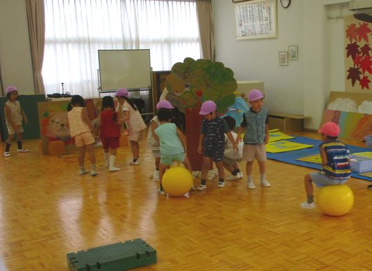 園庭や遊戯室で、のびのび動く面白さを感じられるようにしています。