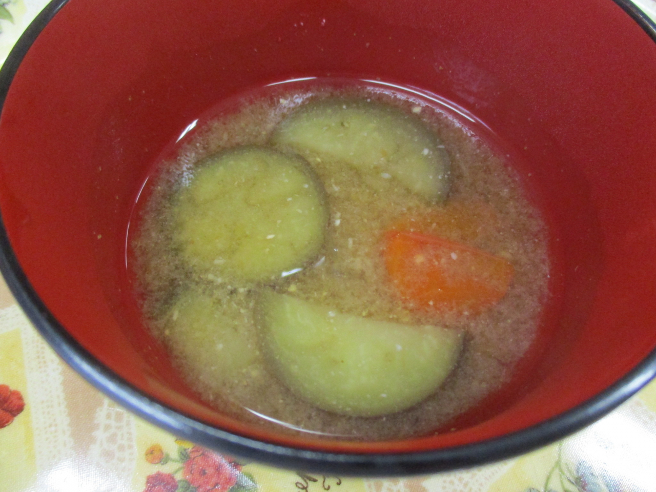 今日は、収穫したナスを使って味噌汁を作り、楽しみました。ミニトマトも少し入れることになり、なかなかよい味でした。