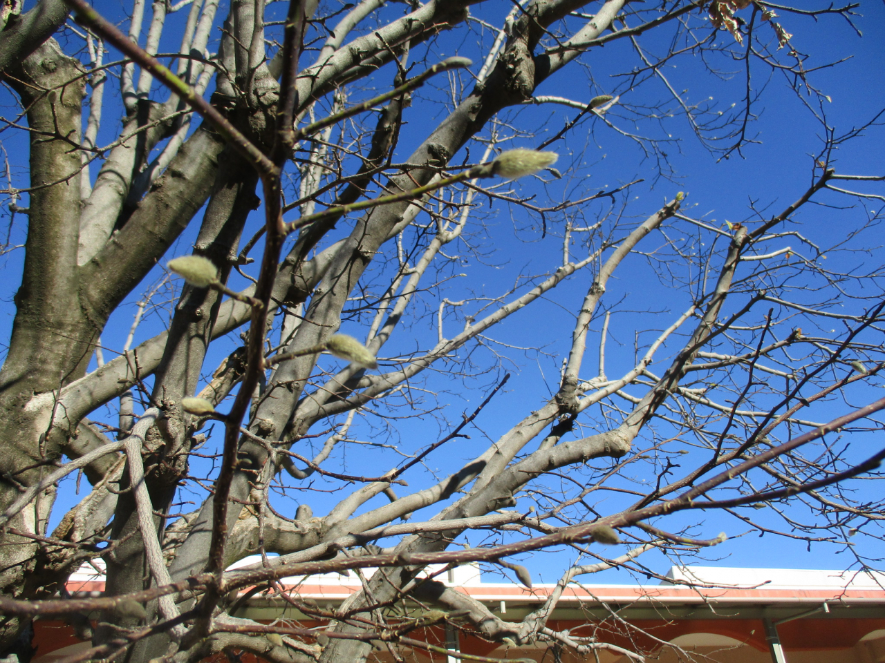 1組の保育室前にあるコブシの木は、すっかり葉が落ちましたが、もう新しい芽がふっくらと膨らんできました。一歩一歩季節は巡っています。