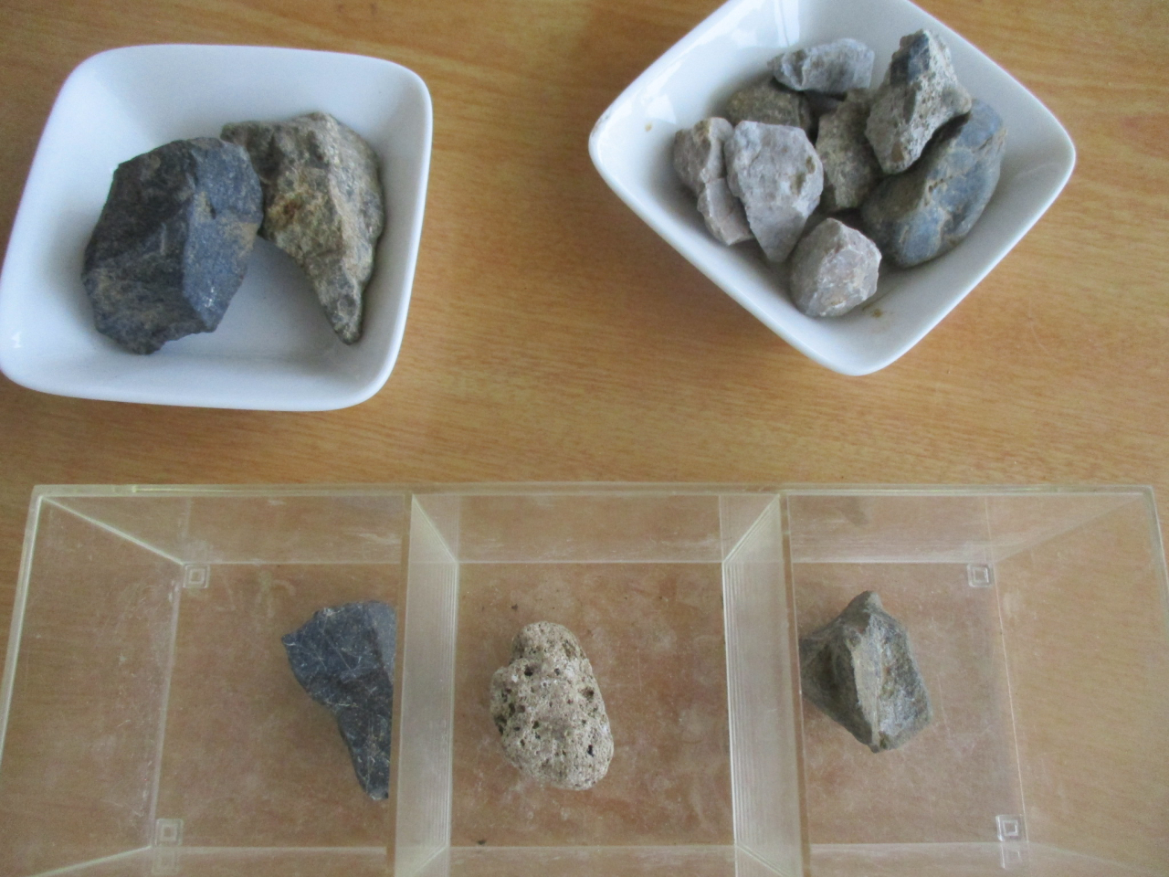 3組のテラスのテーブルには「石」が並んでいます。いろいろと“研究”している人たちがいるようです。