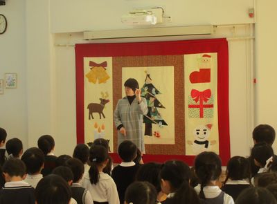 12月のこども会は、みんなで「あわてんぼうのサンタクロース」を歌ったり、3組が以前から取り組んできた楽器の演奏を披露したりしました。曲目は「きらきら星」と「トルコ行進曲」でした。