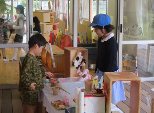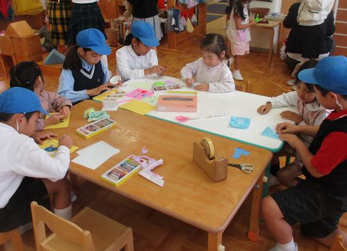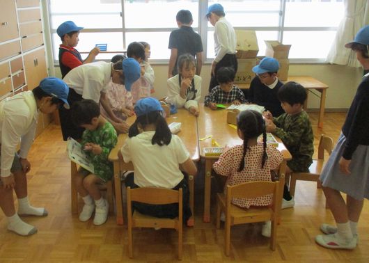 2組にも、別のクラスの4年生が幼稚園にやってきました。前回と同様、一緒に園内で楽しく遊ぶことができました。