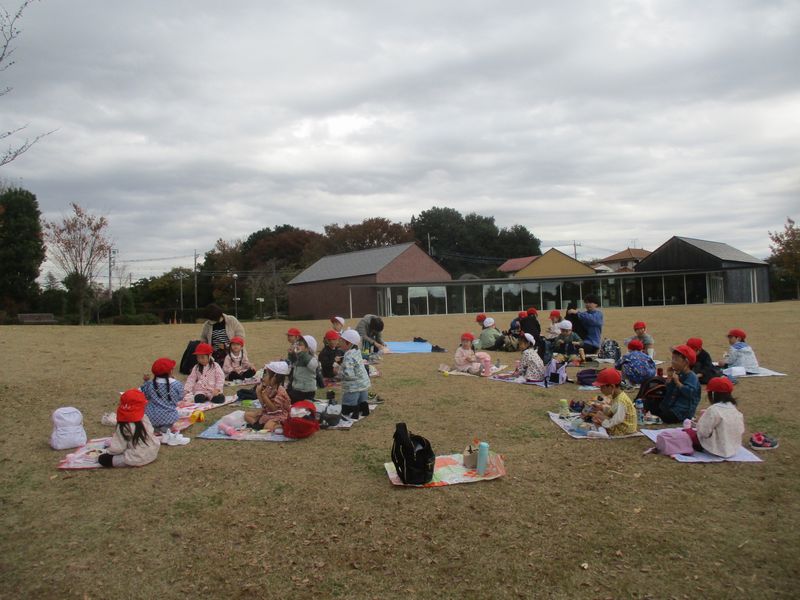 肌寒さを感じる日中でしたが、広場でたくさん体を動かしたり、みんなでお弁当を食べたりして過ごしました。