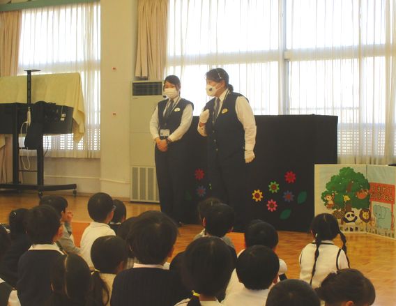 訓練の後には、2、3組は警察の方からお話や人形劇を見せてもらい、1組は紙芝居を見て、それぞれ大切なことを学びました。