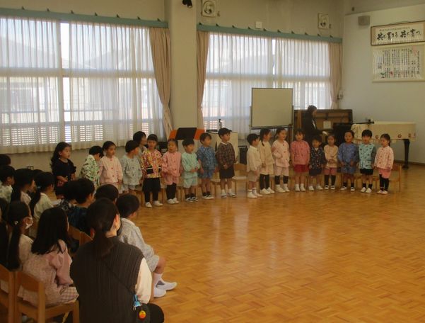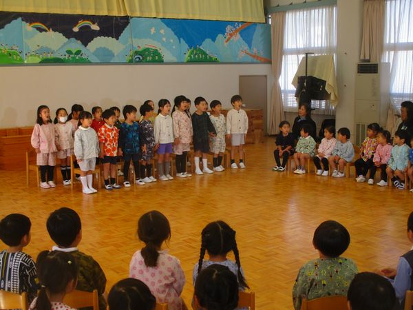 1組「くだものれっしゃ」、2組「バスごっこ」、3組「にんげんっていいな」、どれも素敵な歌でした。