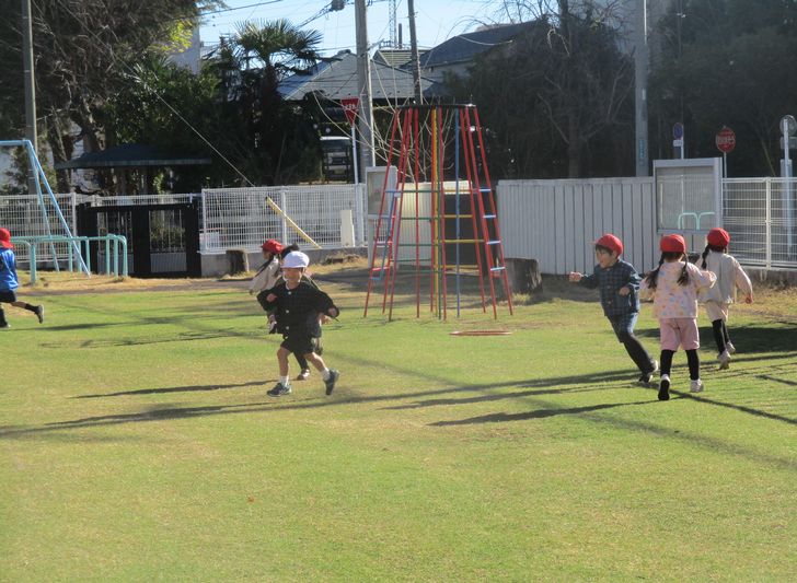 1組と2組の人が混ざって、鬼遊びやかくれんぼをする姿もありました。クラスの友達だけでなく、いろいろな関わりがさらに増えてきたように感じます。