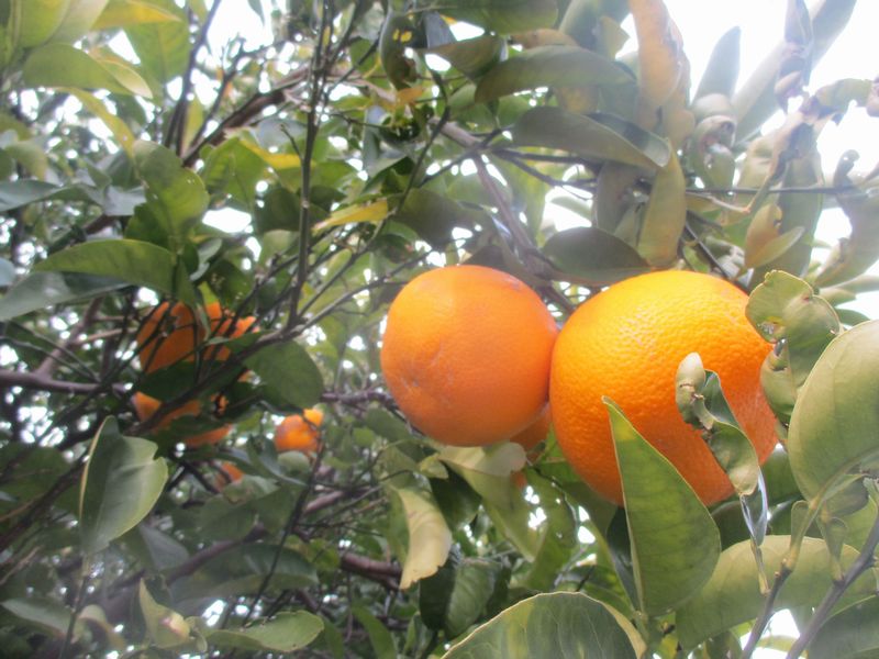数年前に植えたキンカンの樹も、今年はだいぶたくさんの実をつけています。