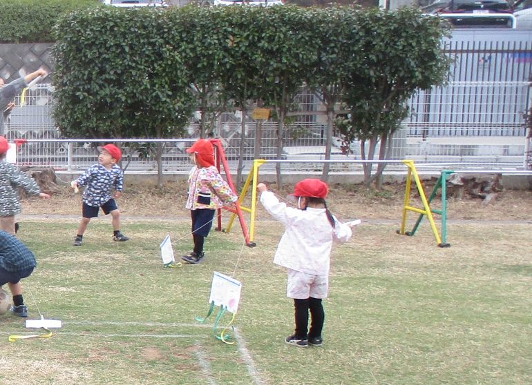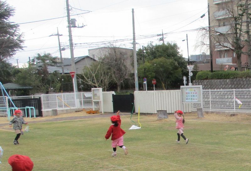寒さをたっぷり感じる中でも、1組では、自分で丁寧に作った「凧」を手に、さっそく広く走って試している姿がありました。