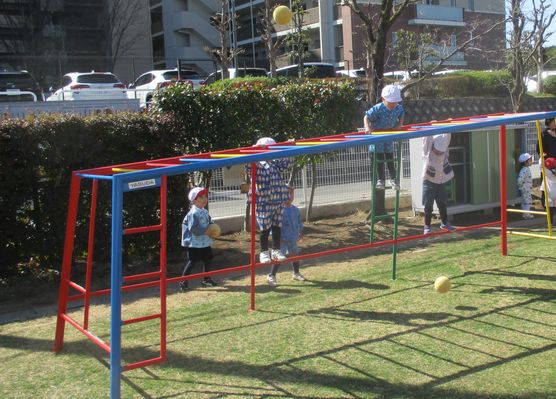 朝から強い風が吹く中でしたが、園庭に遊び出していく人がたくさんいました。