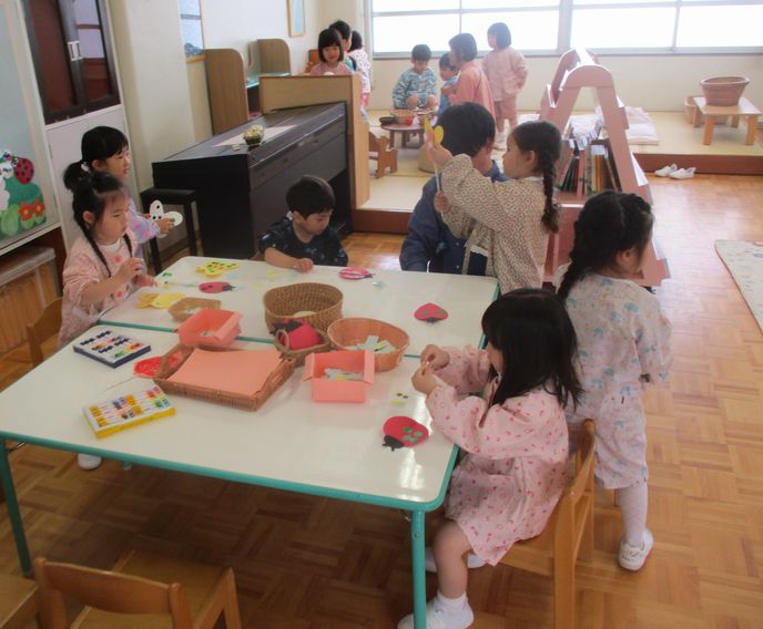 2組では、一緒に過ごす友達が増えて、春を感じながら、園庭に出て遊ぶ姿がたくさんありました。
